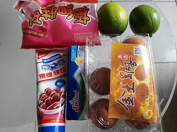 材料:檸檬皮屑、檸檬汁、細砂糖、煉乳、奶油、雞蛋*3