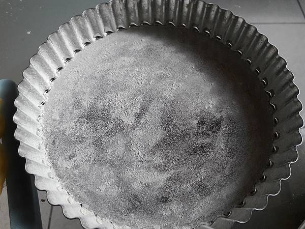 塔模上沾上奶油並撒上高筋麵粉,以利脫模