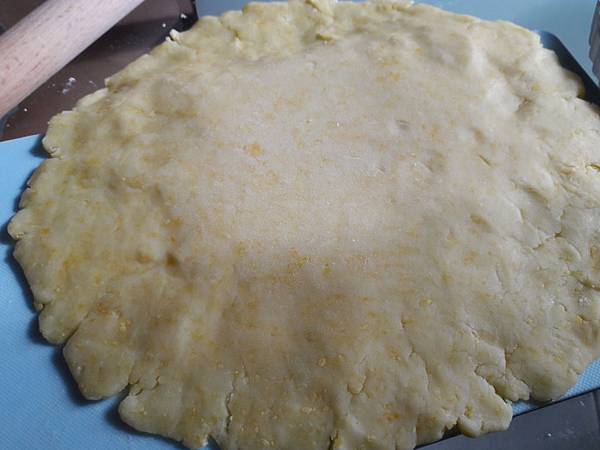桌面上撒上高筋麵粉防沾,擀開麵團至超過塔模3公分