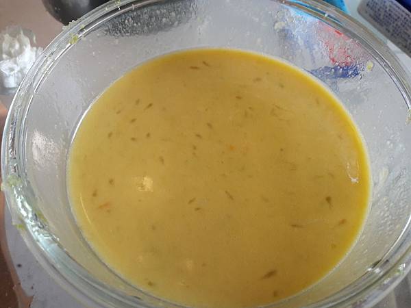 將檸檬汁、打散的蛋液、煉乳分次加入並攪拌均勻