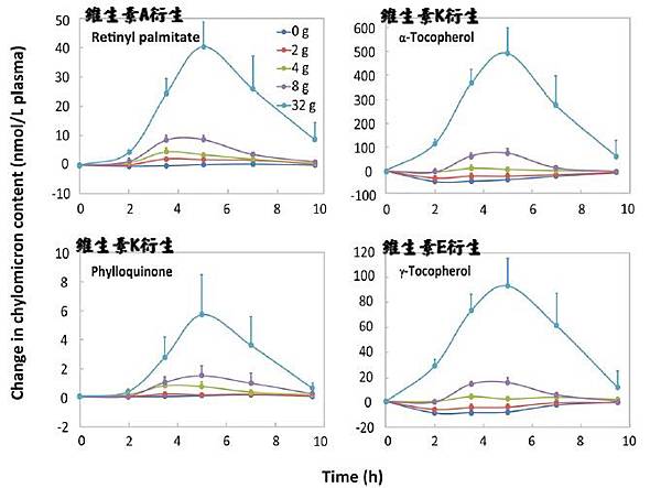 但隨著油脂的添加劑量增加,血液中的營養素濃度則顯著上升!