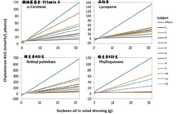 圖4-7:Figure1-4 in Modeling the dose effects of soybean oil in salad dressing on carotenoid and fat-soluble vitamin bioavailability in salad vegetables, 2017 Oct