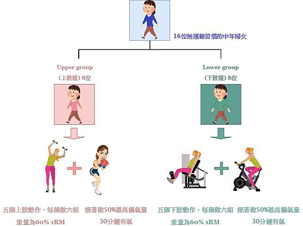 實驗找來了16位無運動習慣的中年婦女,隨機分成兩組